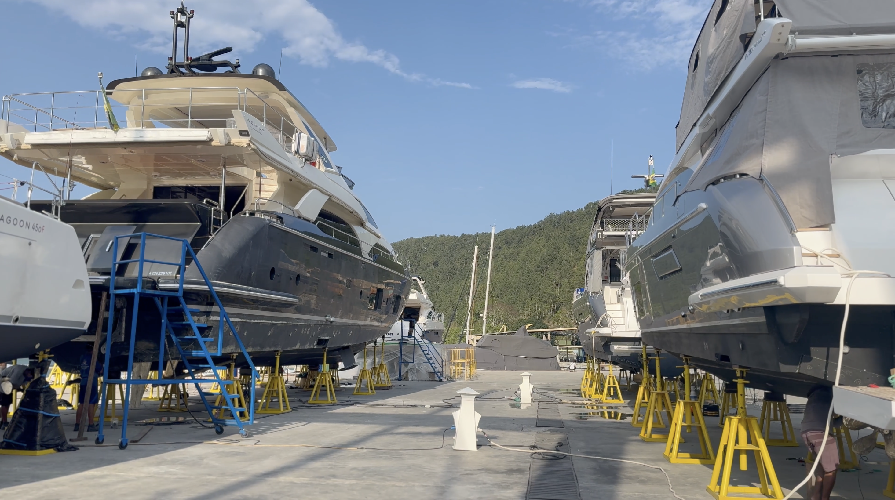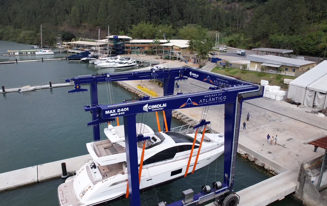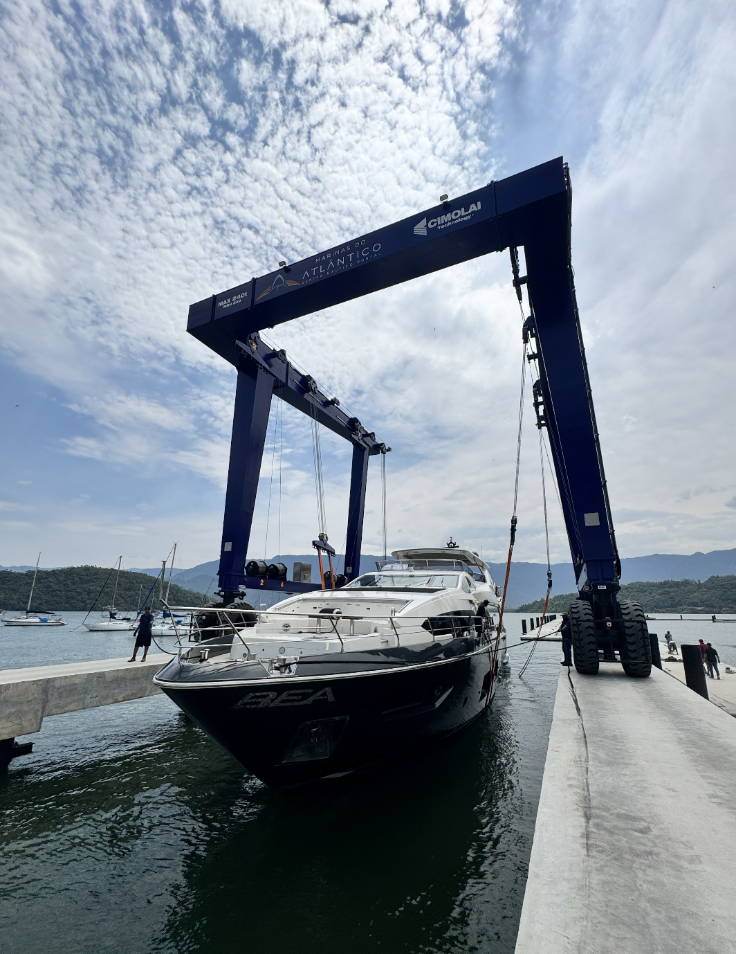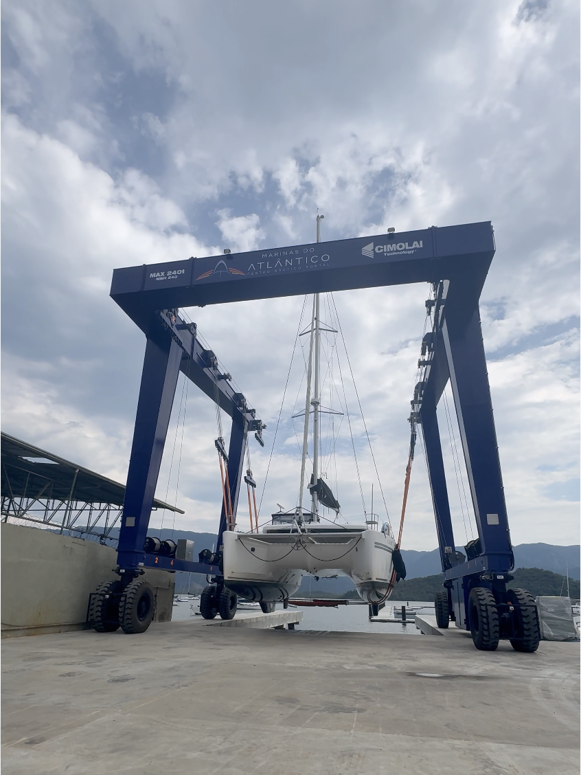 Pátio de serviço com 4.200 m², equipado com travel lift com capacidade para embarcações de até 220 toneladas.