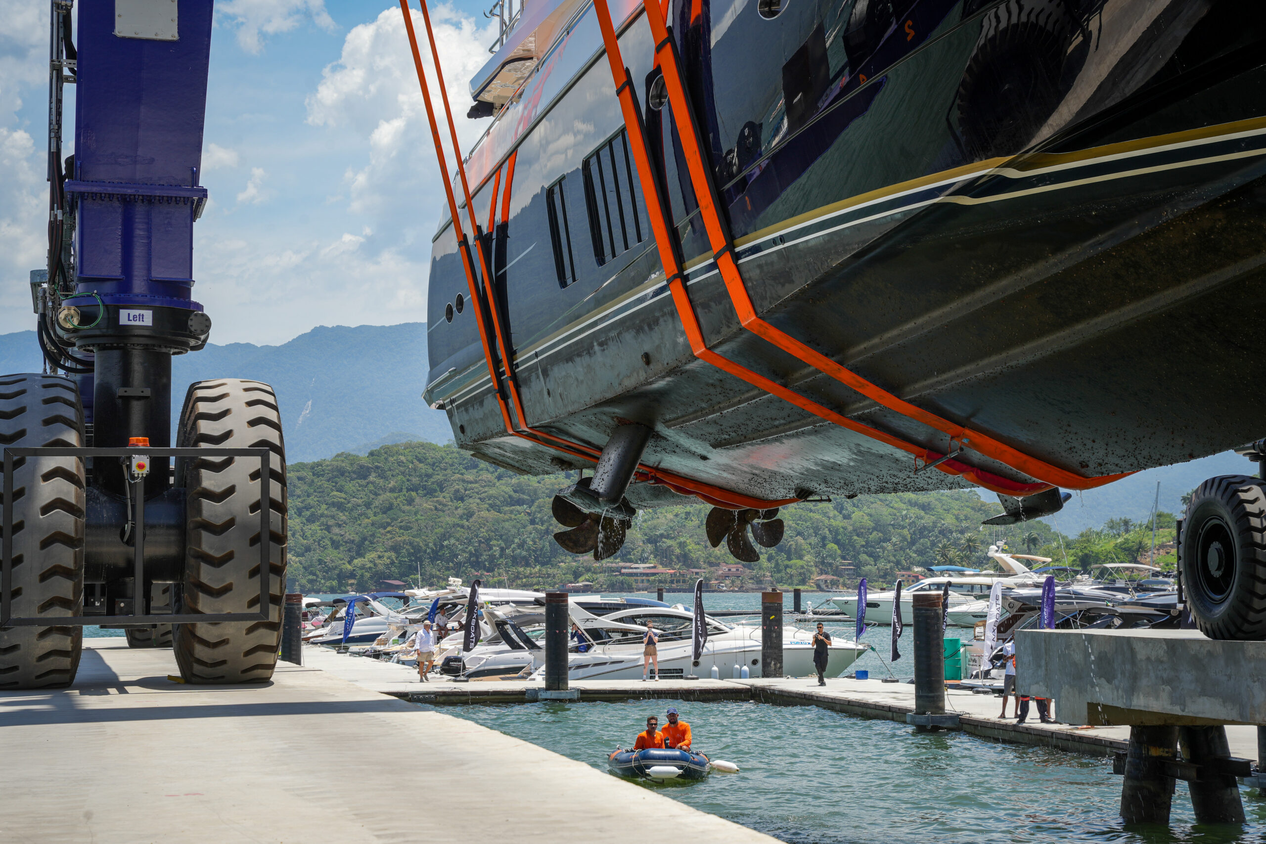 Força, controle e confiança em cada movimento. Uma infraestrutura robusta, com capacidade projetada para levantar e movimentar embarcações de até 240 toneladas e boca de 11 metros.